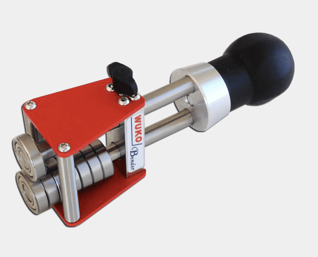 The Wuko Mini Bender 2050, a larger version of the 2020, is made specially for radius inside and outside bends. Because of its small size, it makes it possible to achieve very tight radius. Although intended to bend sheet metal in curves, it also works on straight bends, although not ideally.