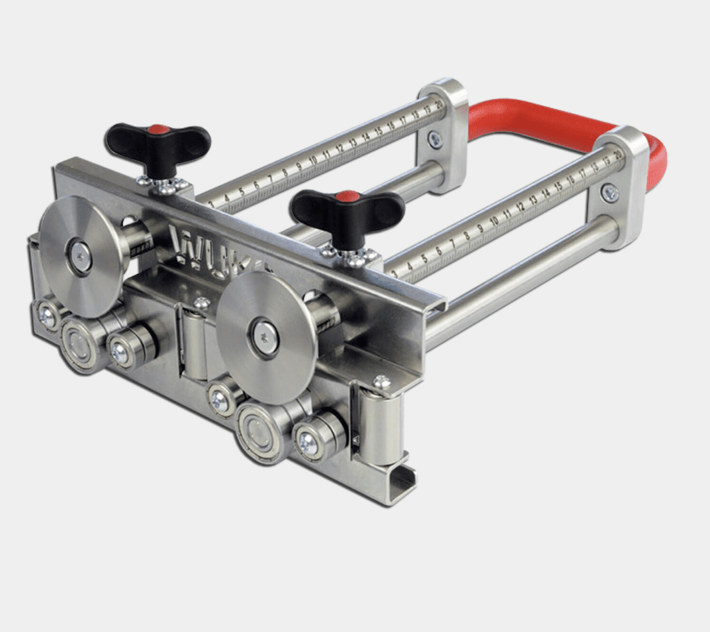 The Wuko Uber Bender Duo 7200 features two bending angled wheels, which allows for bends over 90° up to 100°. It also allows for the bender to be over previous bends, such as bending along longitudinal beadings, or panel profile bends. Unlike the 6200, this bender features two sets of rollers and a handle, making it ideal for longer straight lines.